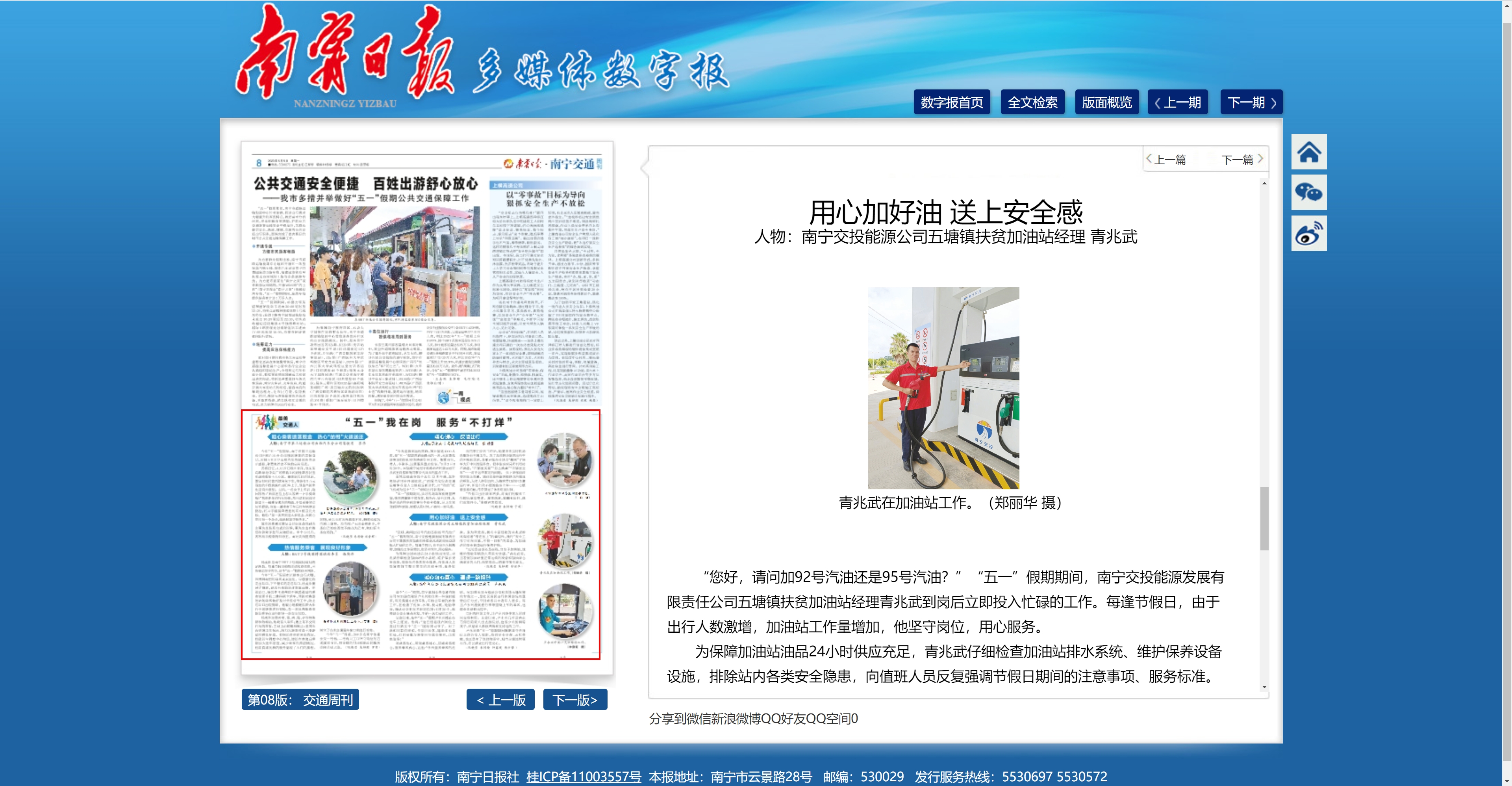“五一”我在崗 服務(wù)“不打烊” 用心加好油 送上安全感 人物:南寧交投能源公司五塘鎮(zhèn)扶貧加油站經(jīng)理 青兆武