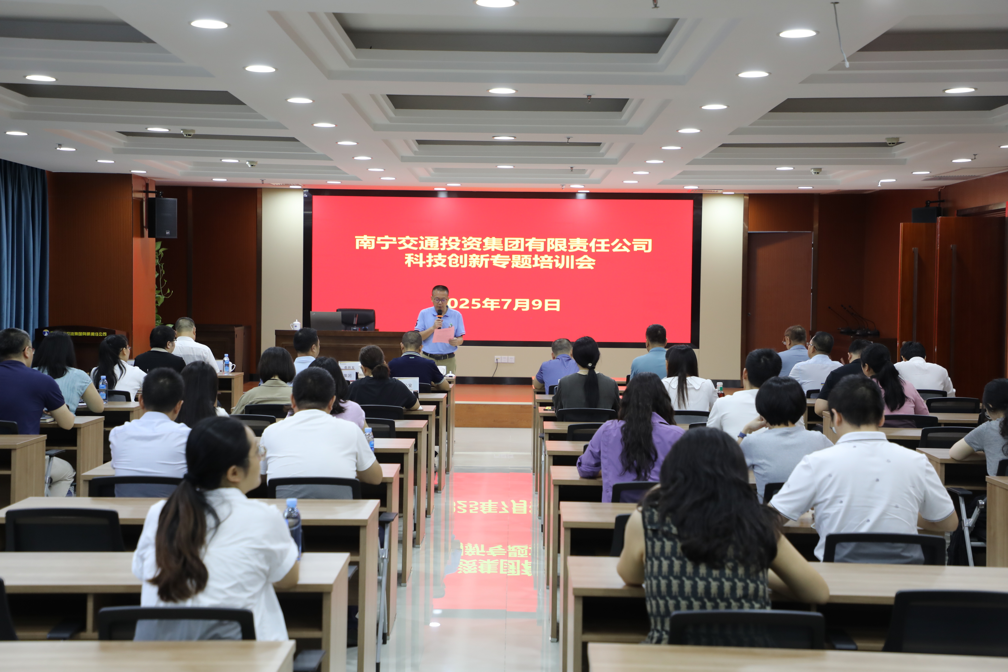 為推動集團(tuán)公司科技創(chuàng)新專項(xiàng)行動落地見效,7月9日,南寧交投集團(tuán)組織召開科技創(chuàng)新專題培訓(xùn)會,特邀三位行業(yè)講師授課,通過系統(tǒng)解讀政策、分享實(shí)踐經(jīng)驗(yàn),為集團(tuán)公司科技創(chuàng)新工作精準(zhǔn)賦能。南寧交投集團(tuán)副總經(jīng)理羅維松主持培訓(xùn)會,南寧交投集團(tuán)各部門負(fù)責(zé)人及下屬企業(yè)相關(guān)人員約40人參加培訓(xùn)。